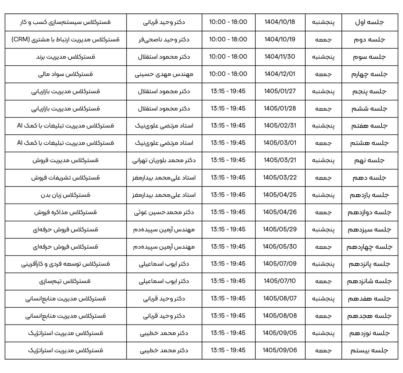 - فیلم و صوت کامل تمام جلسات